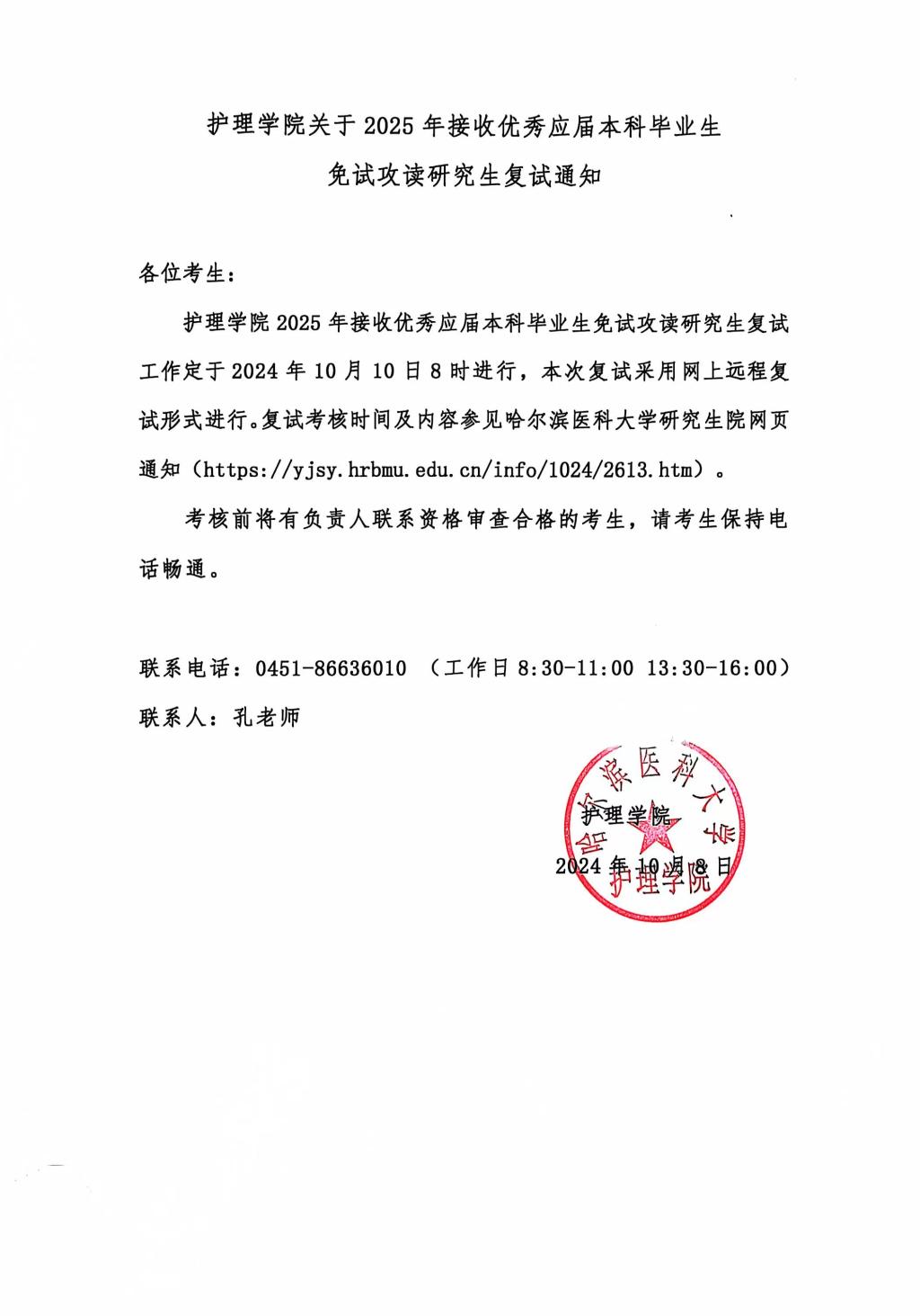 护理学院关于2025年接收优秀应届本科毕业生免试攻读研究生复试通知
