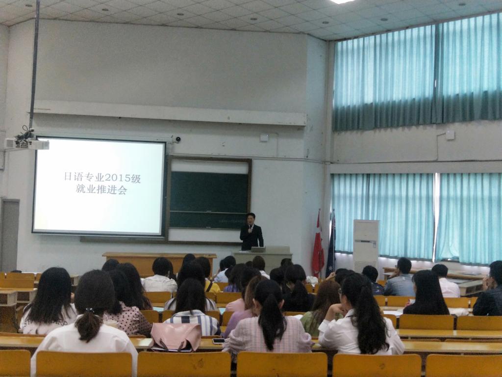细雨绵绵,又是一年毕业季! 5月26日周日上午,外国语学院日语专业举行了“2015级就业推进会”和“毕业实习答辩会”。