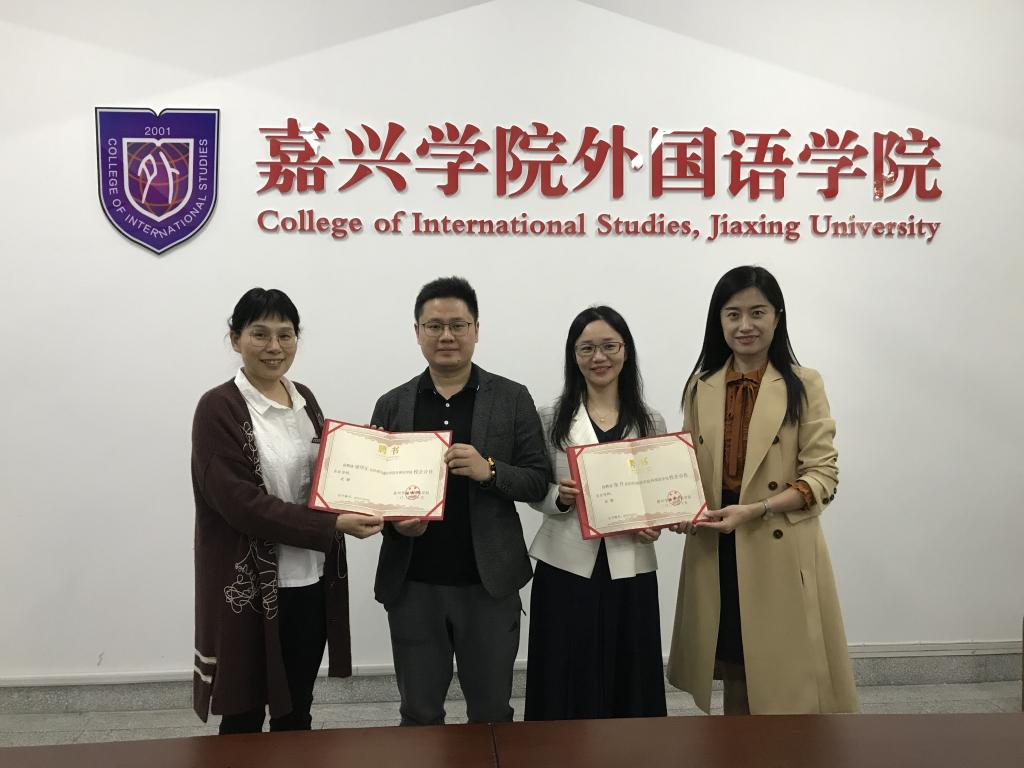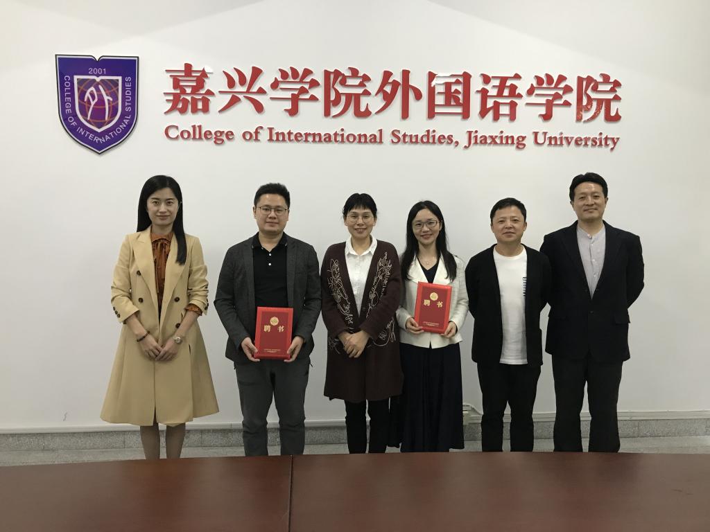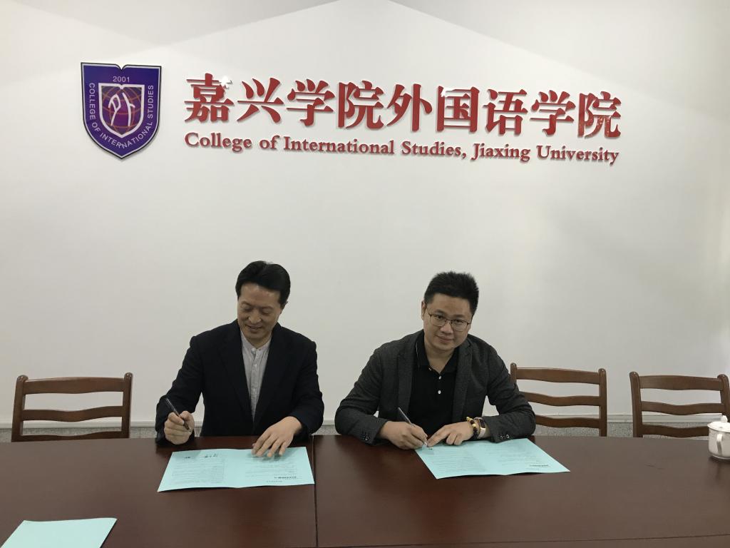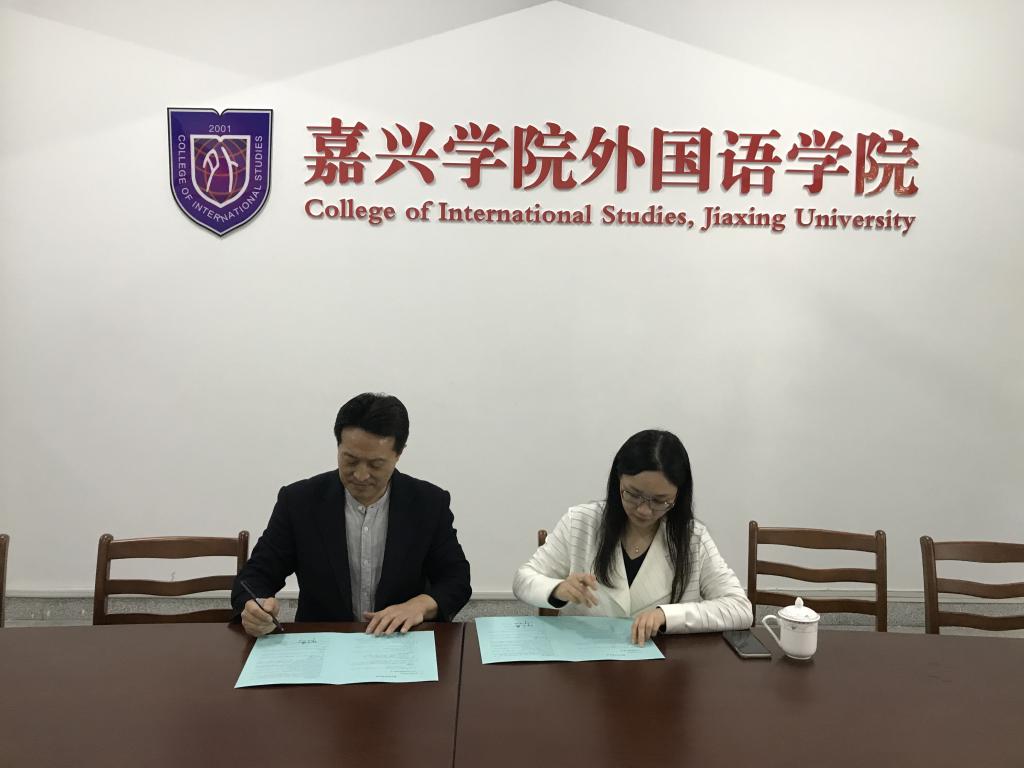 10月17日下午,嘉兴学院外国语学院与杭州光驰控股有限公司、嘉兴市杉惠服饰有限公司在外语楼204会议室举行校企合作签约仪式及校外导师聘任仪式。光驰总经理凌华正、杉惠总经理张丹、外国语学院党委书记陶丹玉、副书记周钰、副院长郭永恩、副院长喻峰平、日语系教研室朱京哲博士等参加了签约仪式。