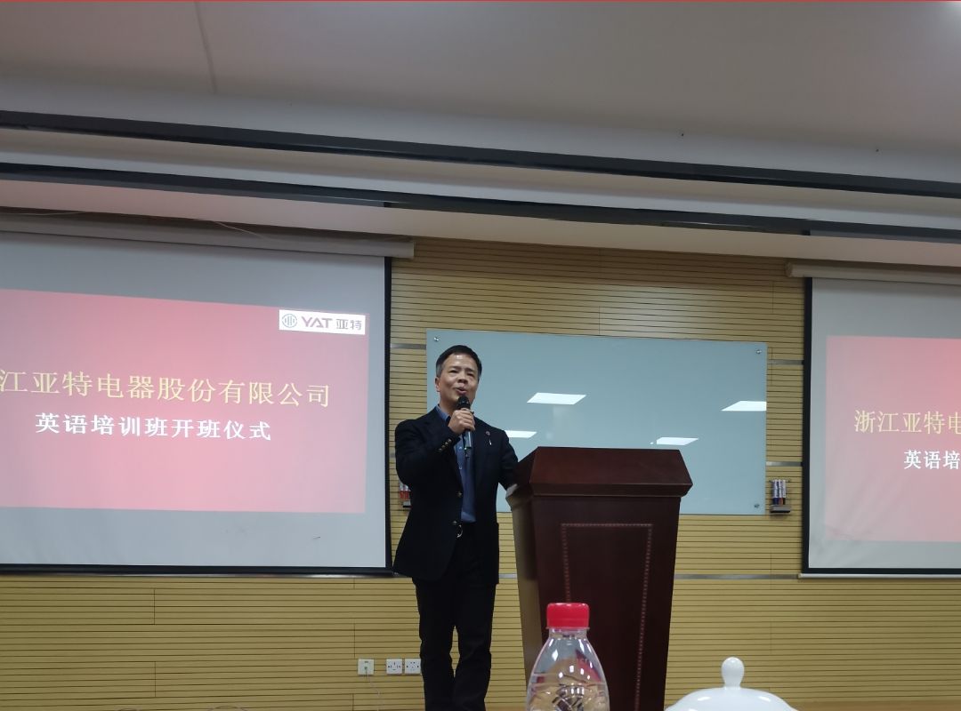 陈勇由衷地感谢嘉兴大学外国语学院对亚特电器股份有限公司员工英语培训工作的大力支持,希望员工们能借此机会学好英语,开阔国际视野,提高跨文化交际能力,为适应新时期全球化需求和公司海外业务快速发展做好准备。