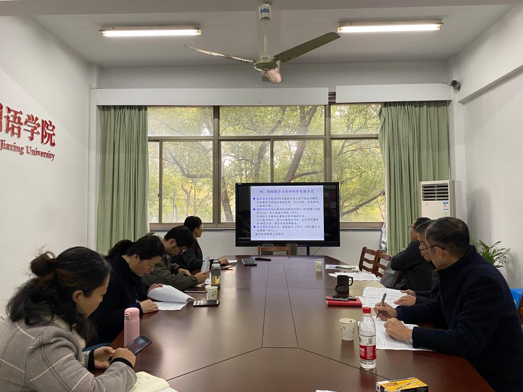 12月6日上午,外国语学院2020年度校级课程课改类项目结项验收评审会议在外语楼204会议室召开,对2017年和2018年立项的校级特色示范课(B1)、视频资源课(B2)和课堂教学改革项目(B4)进行结项验收。会议由喻锋平副院长主持,陶丹玉、张静、杨泓、鲁俊丰四位项目负责人参加验收答辩。