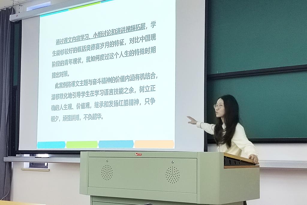 “我将A Journey Through the Odyssey Years这篇课文的主题与奋斗精神相结合, 旨在引导青年学生在学习语言技能之余,继承和发扬红船精神,只争朝夕、顽强拼搏、不负韶华”“我认为课程思政教学的最高境界是‘润物细无声’,教师在学生心目中悄悄播撒真、善、美的种子,精心浇灌、静待花开”……5月26日下午,为推进课程思政的有效落实,丰富课堂教学研讨形式,推动课程思政理念入脑入心,全面提升外语课程思政教学质量,外国语学院分系部召开了精彩纷呈的课程思政集体备课会。