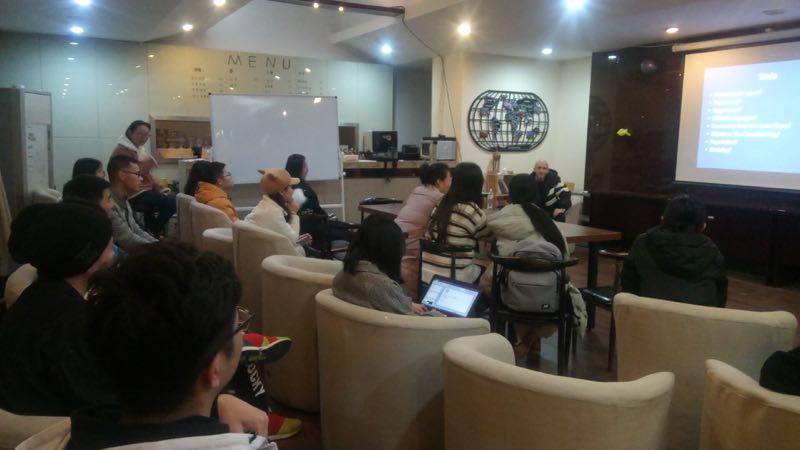 12月20日晚18:30,由我校外国语学院主办的中外教沙龙在建工楼一楼咖啡吧正式举办。作为本学期第二次中外教老师见面交流会,本次担任主讲人的是外教老师Lucas Hengel。他设计的主题是Canada: a pretty good place to be,现场到达老师及学生人数有30余人。让我们一起走进活动现场。