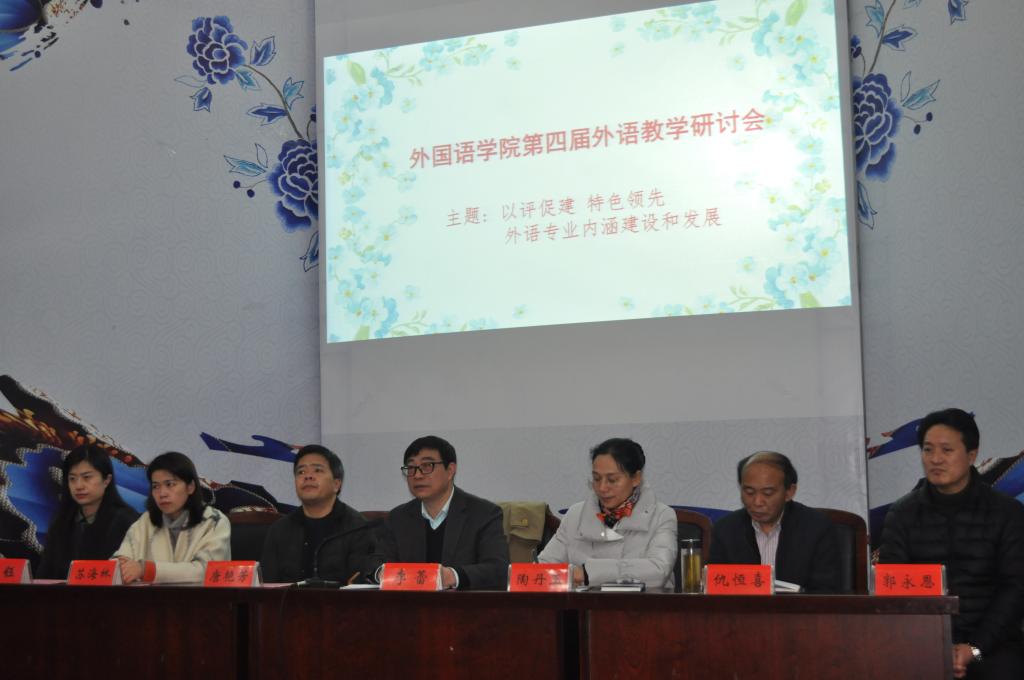 2018年1月20日,紧张的学期还没进入尾声,外国语学院联合南湖学院人文系、平湖校区应用技术学院在越秀第四报告厅举行了外国语学院第四届外语教学研讨会。研讨会由外国语学院院长唐艳芳、副院长喻锋平轮流主持。教务处李蕾处长、南湖学院副院长仇恒喜、应用技术学院副院长苏海林和外国语学院全体班子成员出席会议。