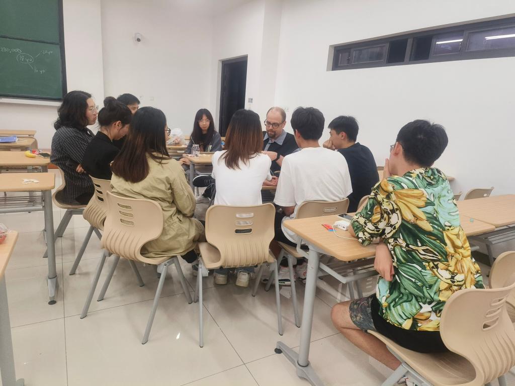 英语沙龙活动以“Average in America”为主题,Nathan与各位同学进行了热烈、愉快的交流。沙龙伊始,Nathan以“美国梦的内容”向同学们提问,耐心引导学生用英语讲述他们对美国梦的见解,并在互动交流的过程中,对学生语法使用和口语发音进行了耐心指导。后面,通过美国梦的牵引,Nathan带领同学们全面地了解了一个“average”美国人的成长过程。他娓娓道来,从父母的相识到结婚生子,再到抚养孩子成人,将这期间所有可能出现的情况一一展现在大家面前,给了同学们一个很清晰的美国人成长过程中所背负的压力及所承受的艰辛,非常真实地还原了一个普通美国民众的正常生活情况。此外,Nathan还带同学们学习了不少相关知识的英语表达,加深了大家对美国的认识。