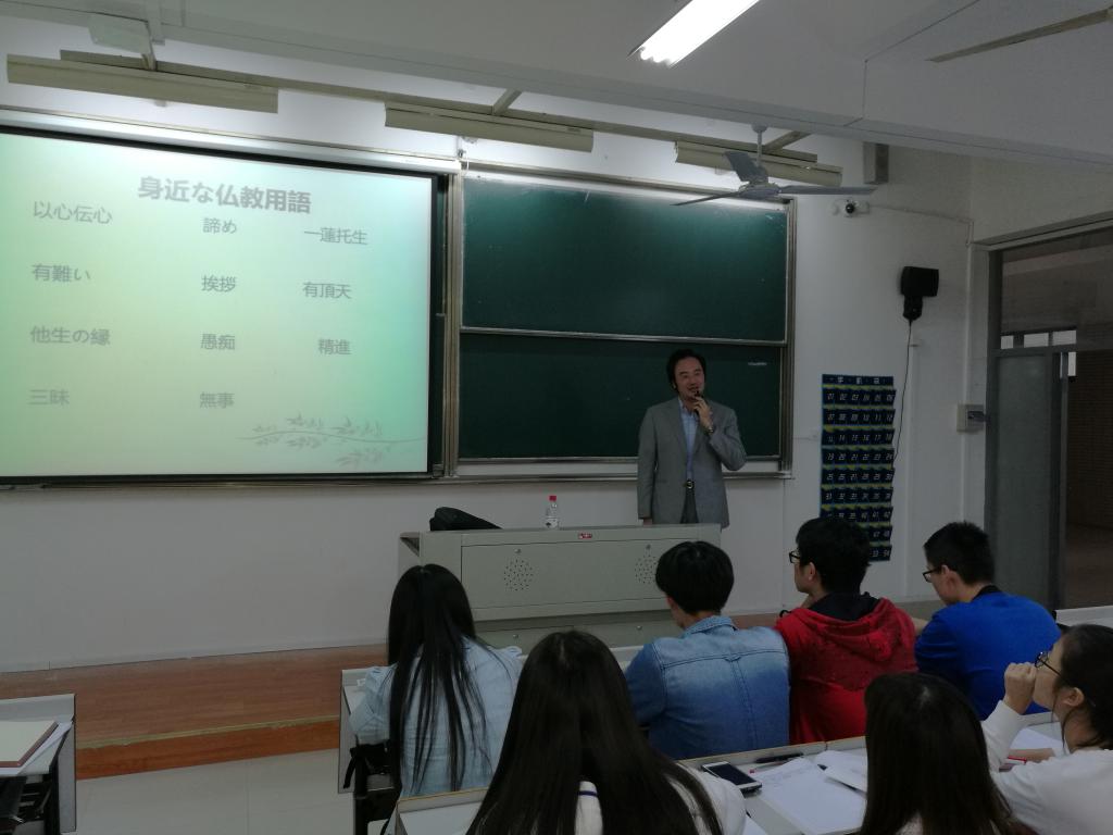 从某种意义上而言,中日两国的文化交流史就是一部以佛教为主体的交流史。直至今日,现代日本人的语言表达和行为方式仍然深受日本佛教的影响。陈博士的讲座,不仅让我们学生更深入地了解了中日两国文化交流的历史,也丰富了我们的日语教学,极大地激发了学生学习日语的意欲。