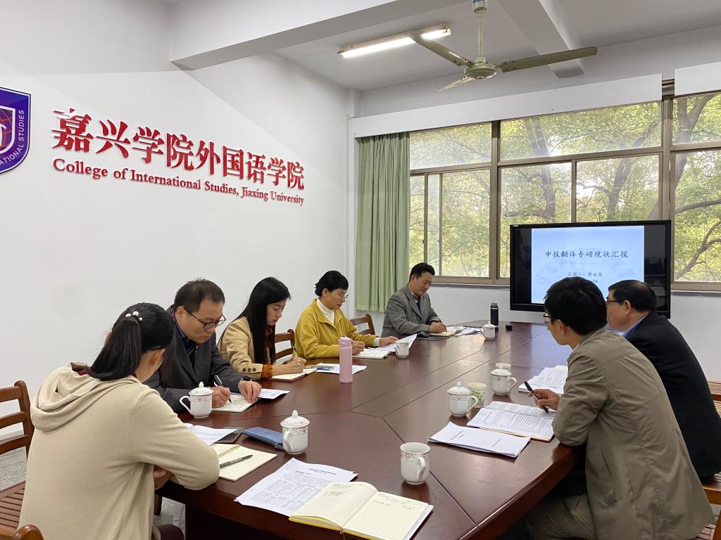 郭永恩作了题为“申报翻译专硕现状”的汇报,他结合《外国语言文学B类重点学科建设规划(2019-2023)》,对标翻译专业学位授权点申报条件,从专业特色、师资队伍、人才培养、培养环境与条件四个方面梳理学科发展现状、对标申报条件存在的主要短板和差距。