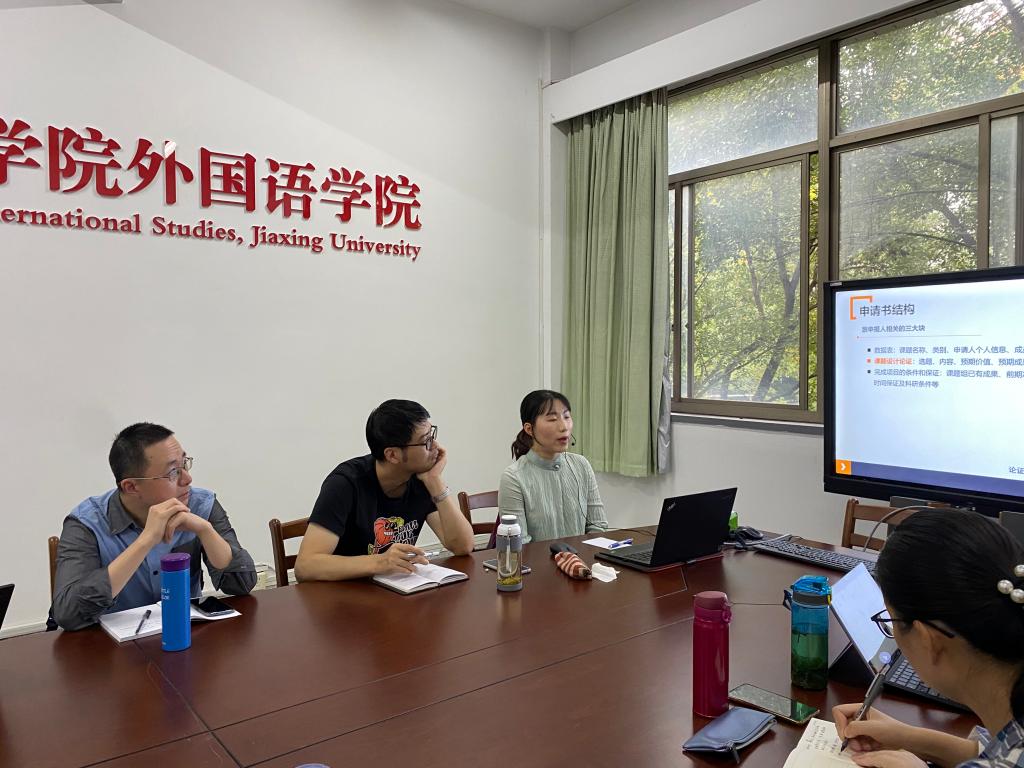 9月24日下午,外国语学院在外语楼204会议室召开省哲社规划课题申报经验分享会,会议由科研副院长郭永恩教授主持,英语系邱佳博士担任主讲,具有博士学历和副教授以上职称的近30余名科研骨干教师参加了会议。