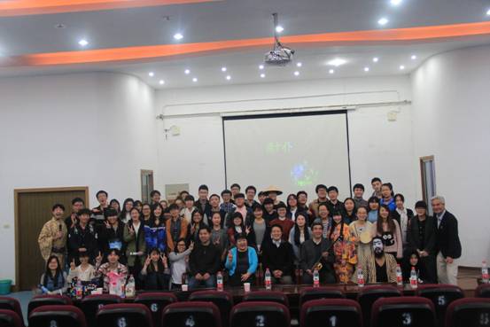 11月5日晚, 外国语学院在越秀校区第四报告厅举办以“冲绳之夜”为主题的中日文化交流晚会。此次晚会由校级社团日本语俱乐部协办。出席晚会的有:冲绳县政府上海事务所副所长潘健儿、外国语学院日语系主任郭永恩教授、畅宝仁老师、南湖学院日语专业负责人何俊山副教授、以及100多名日语爱好者。