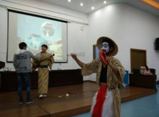 此次活动通过舞蹈、音乐和大量的视频图片等形式向大家介绍了冲绳的历史文化、风俗习惯、语言、饮食等。来自上海同济大学的日本留学生西原圭佑和天久晃二郎为嘉院师生表演了具有浓郁民族色彩的冲绳民谣和舞蹈。我校日语外教照屋庆子老师亲自教了几句地道的琉球话。来自冲绳县上海事务所的潘建儿副所长回答了同学们关于冲绳的各种提问,邀请大家来冲绳观光旅游。
