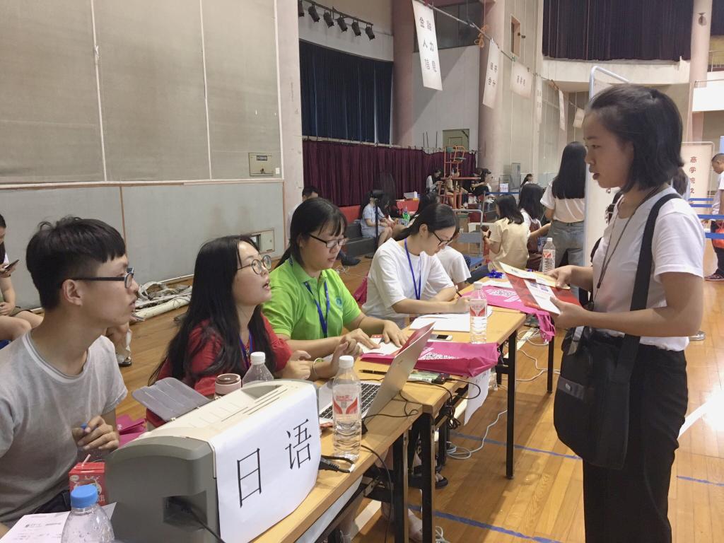 13日下午2点,新生陆续来校。在迎新现场,志愿者们分工明确,各类指示板整齐显眼,使新生与家长对报到的流程更加明了。迎新的志愿者以饱满的热情投入服务,耐心地为他们办理报到手续。志愿者们不停地穿梭在校道上,热情细心地引导新生完成报到流程,帮助新生搬运行李,普及生活小技巧,一切都在微笑中有条不紊地进行着。