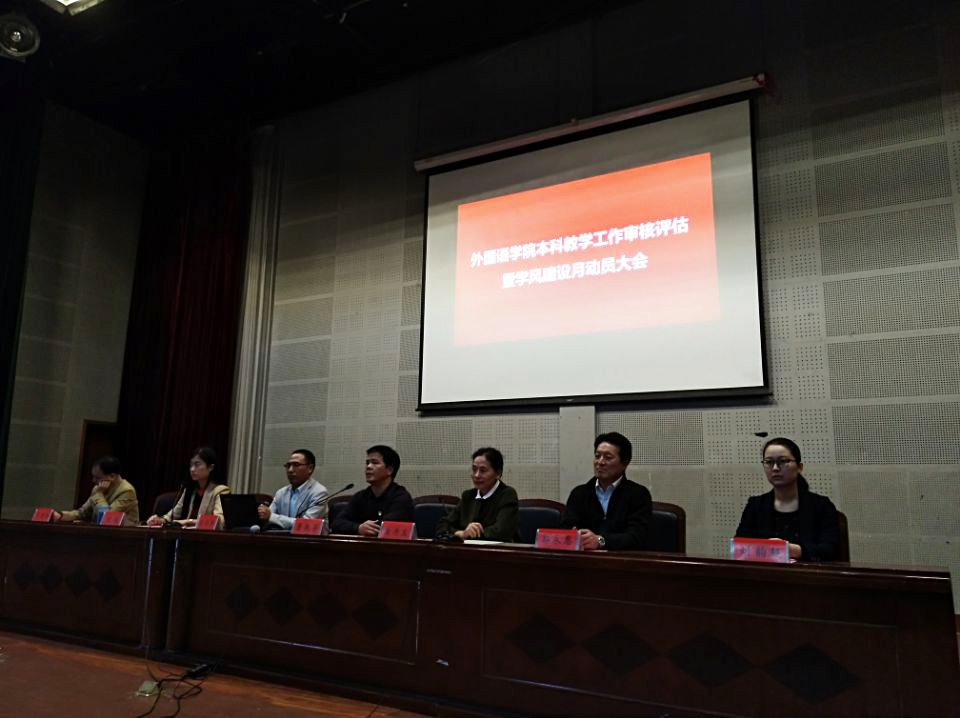10月18日是我校104周年校庆日。当日中午,外国语学院本科教学工作审核评估暨学风建设月动员大会在教二报告厅召开。会议由周钰副书记主持,外国语学院党政领导、系部主任和全体在校学生参加了此次会议。