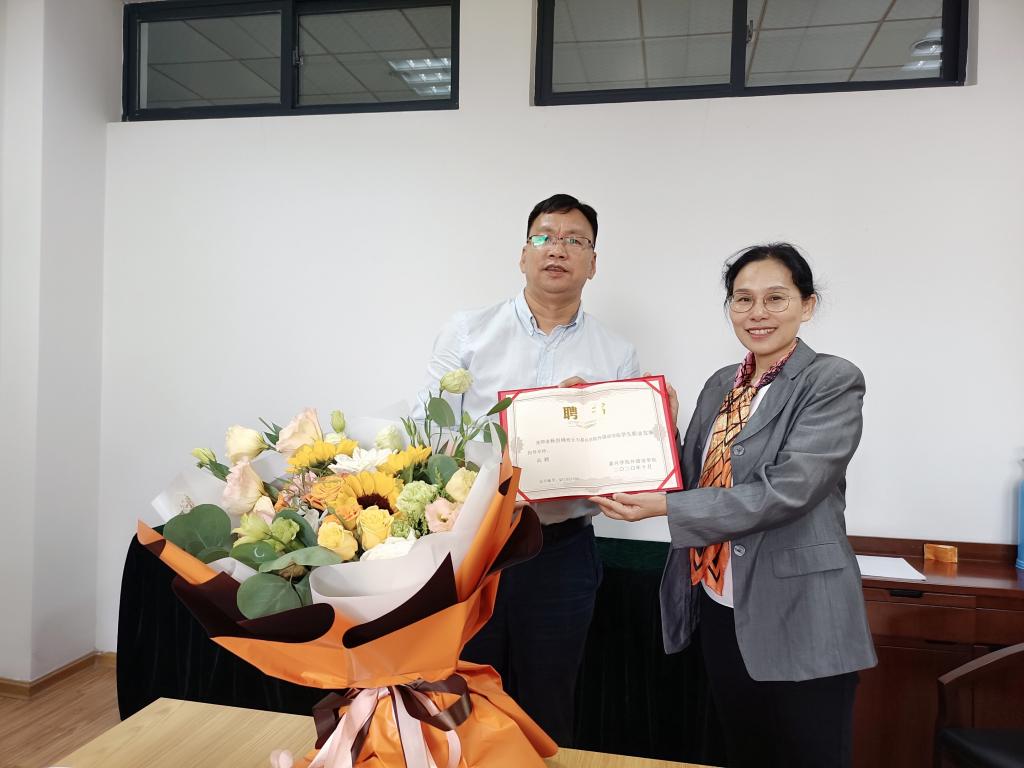 会谈中,陶丹玉书记真诚地表达了母校的问候和关怀,向杨剑峰校长颁发了嘉兴学院外国语学院学生职业发展指导导师的聘书,并盛情邀请杨校长在10月校庆期间回母校参加校庆纪念活动。陶书记介绍了外国语学院英语和日语两大专业的毕业生的就业情况,请杨剑峰校长从企业用人的角度对商务英语和日语方向的学生的学业规划和就业前景提出了宝贵的建议。喻院长和郭院长也与杨剑峰校友进行了深入的交流,分享了我院近几年在人才培养模式、招生就业工作以及服务社会等方面取得的成绩以及在助力学校申硕创大方面所做的工作。一行人还深入交流了我院近几年学生的考研率和留禾率,目前尚存在的问题,以及大一新生职业规划教育的迫切性。