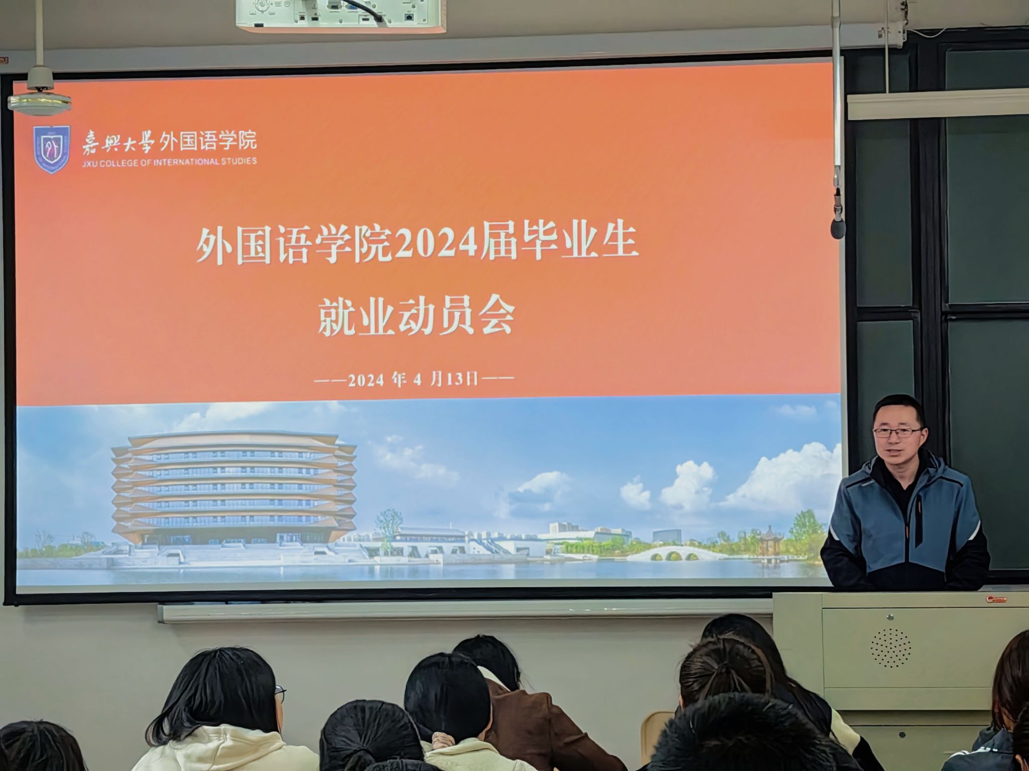 4月13日下午,外国语学院2024届毕业生就业推动会于兴德楼南楼203教室召开。学院党政领导、系主任、2024届全体毕业生、辅导员参会。会议由学院党委副书记张啸峰主持。