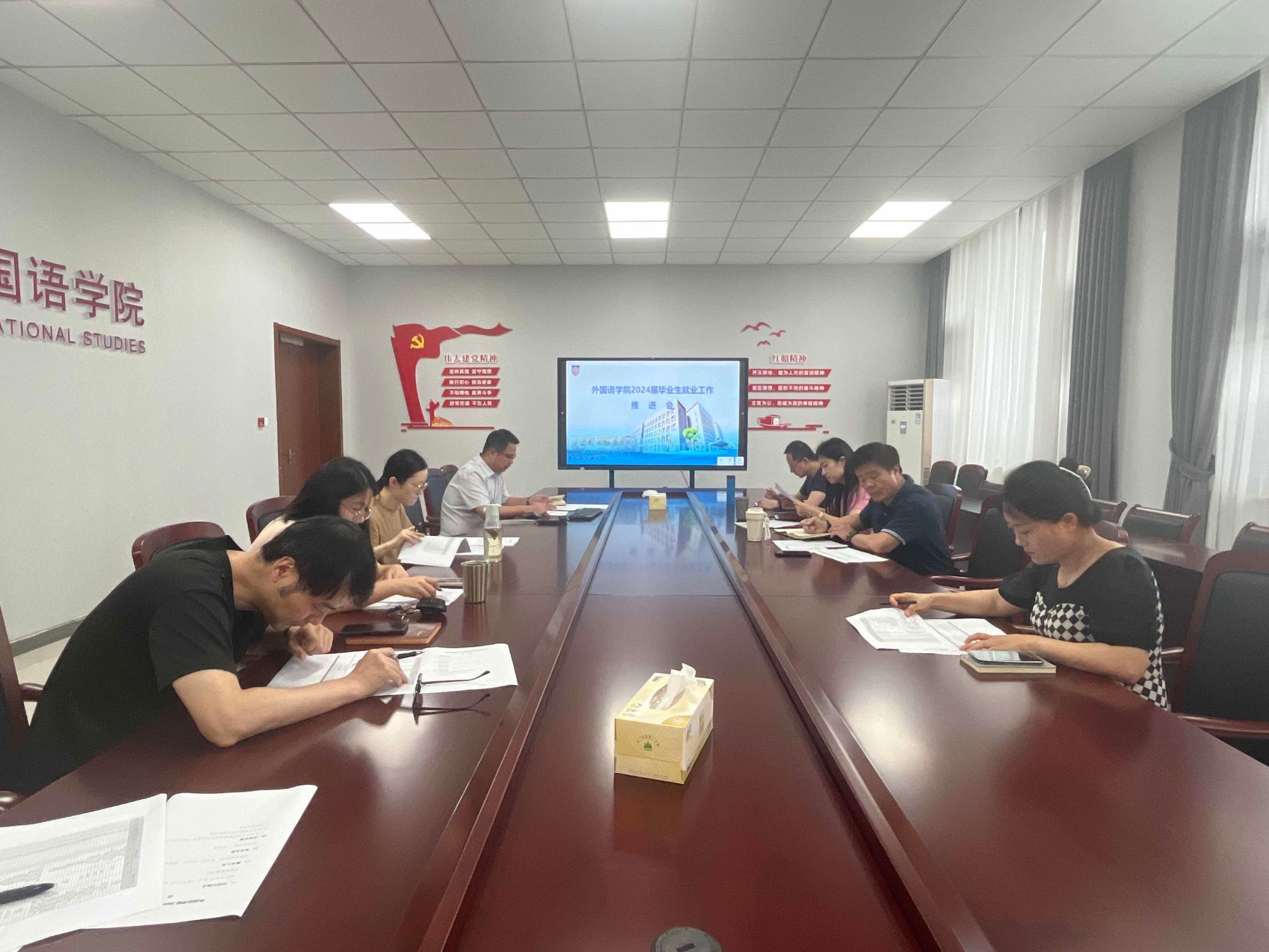 6月30日,外国语学院在兴德楼南楼516召开2024届毕业生就业推进会。学院党政领导、系主任、2024届班主任、辅导员参加会议。党委副书记张啸峰主持会议。