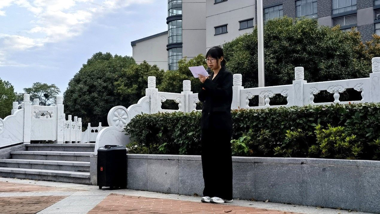 10月14日清晨,外国语学院在梁林校区学生活动中心广场举行本学期首次升旗仪式。全体2024级新生参加了活动。
