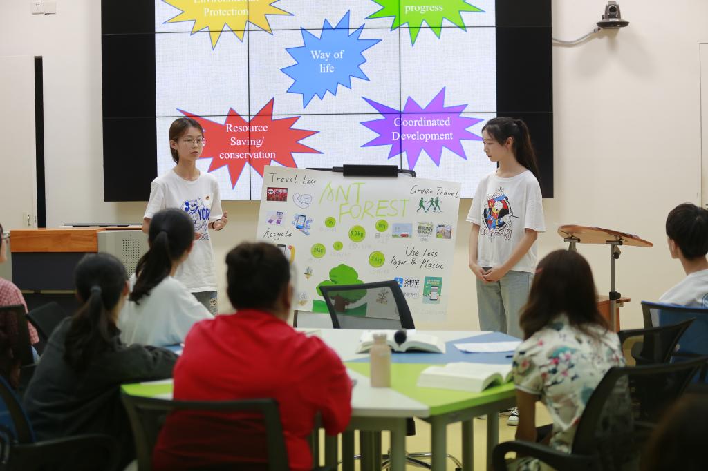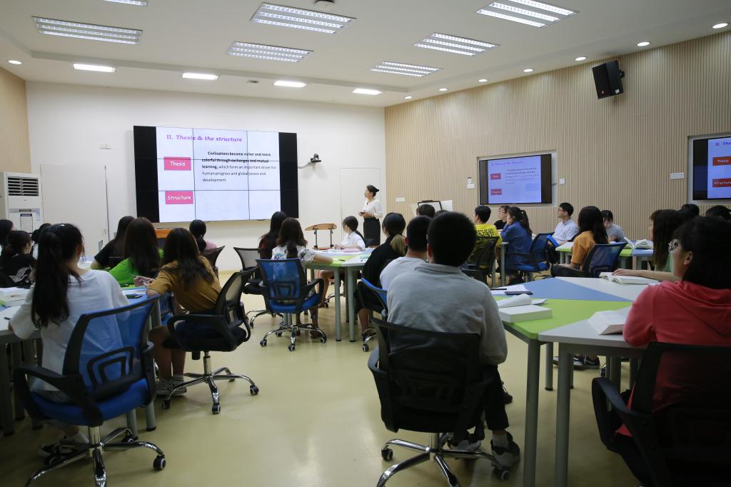 本次读书研讨会采用分享与研讨的方式进行,全英文交流,党员教师通过《习近平谈治国理政》外文版本的课堂导读,引导学生围绕主题学习闪耀马克思主义哲学光辉的理论创新成果。外国语学院党委书记陶丹玉围绕“文明因交流而多彩,文明因互鉴而丰富”的主题为学生生动阐述了文明多彩、平等、包容的魅力所在,从多个角度展现文化自信给一个国家和一个民族带来的更深沉、更持久的力量,激发了现场同学对文明多彩、平等、包容的多视角分享与感悟。党员教师边娜为同学们展现了“共同构建人类命运共同体”的壮阔蓝图,“善学者尽其理,善行者究其难。”教工第三党支部书记鲁俊丰以“推动形成绿色发展方式和生活方式”的课堂主题,循序渐进带领同学们走进绿色生态的大门,鼓励同学们培育和践行绿色文化的自觉性。