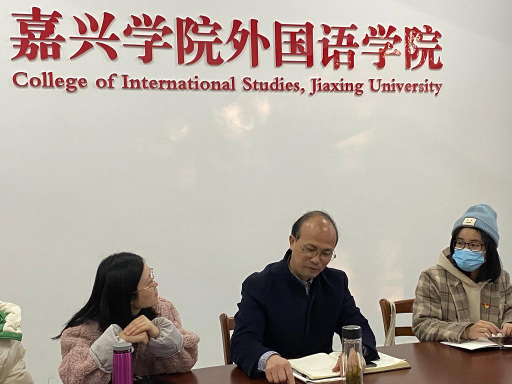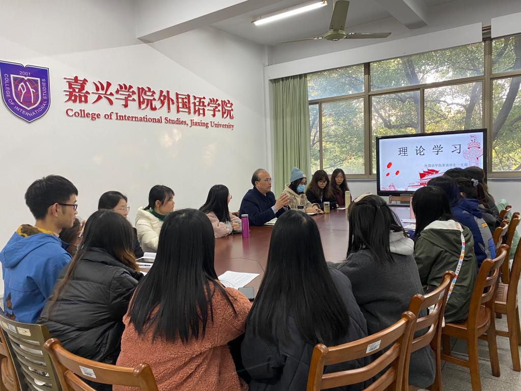 2020年12月4日下午3点半,嘉兴学院外国语学院英语学生第一党支部在嘉兴学院越秀校区外语楼204会议室开展了支部的理论学习会。本次学习会由支部书记胡笳丽主持,联系英语学生第一党支部的校领导杨培强副校长、英语一支部党员和入党积极分子参加学习会。