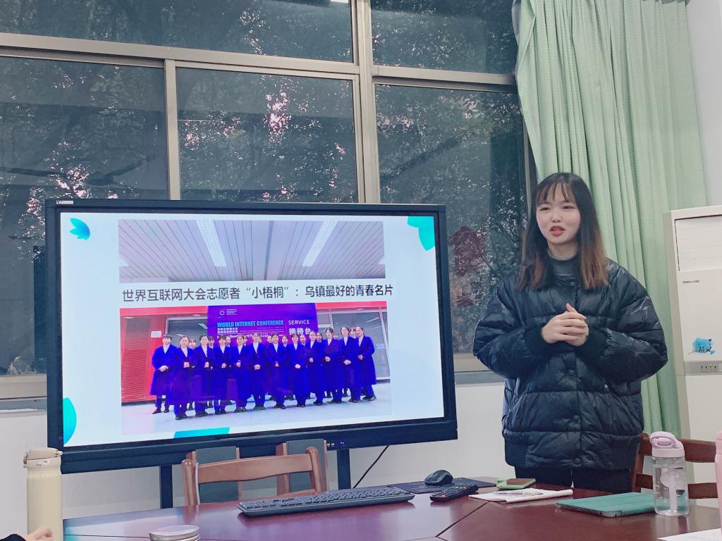 最后,参与了今年世界互联网大会——互联网发展论坛的支部党员志愿者进行服务感悟分享。英语一支部共有6名学生党员参与了此次大会的志愿服务。她们积极服务,展现嘉院学子的风采,分享经历与感悟,提供信息与建议,激励英语一支部更多的学生投身于志愿服务的行列。