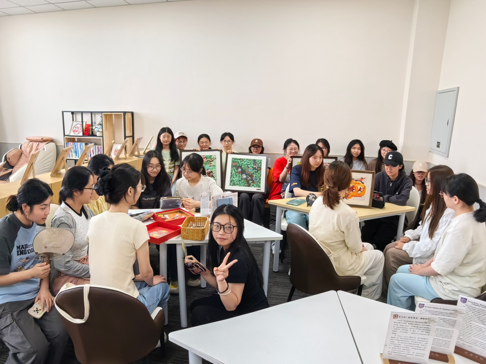 6月19日下午,嘉兴大学外国语学院英语学生第二党支部于兴德楼南楼513开展秀水泱泱农民画——讲好中国故事党日活动。