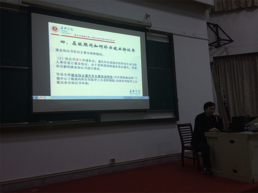 吴维佳老师以学校一年的就业工作安排为主线,为毕业班学生做了细致的讲解。讲座内容包括毕业生就业一般流程,就业协议书签订及相关注意事项,户口迁移和报到证办理和领取,毕业证、学位证的领取,工作劳动合同签订以及如何利用学校的就业创业信息网等方面,内容丰富而详尽。