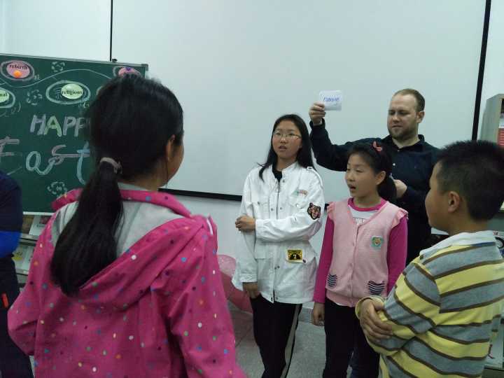 为了让小学员们了解和体验多种文化和习俗,外国语学院社会培训与服务中心邀请了美籍教师Patrick,与中教一起在4月21日给少儿英语培训班学员带来了丰富有趣的英语主题活动。这一天,新概念II级班的孩子们在活动与游戏中参加了一场另类的考核;这种寓考于乐的方式,深受欢迎孩子们欢迎。