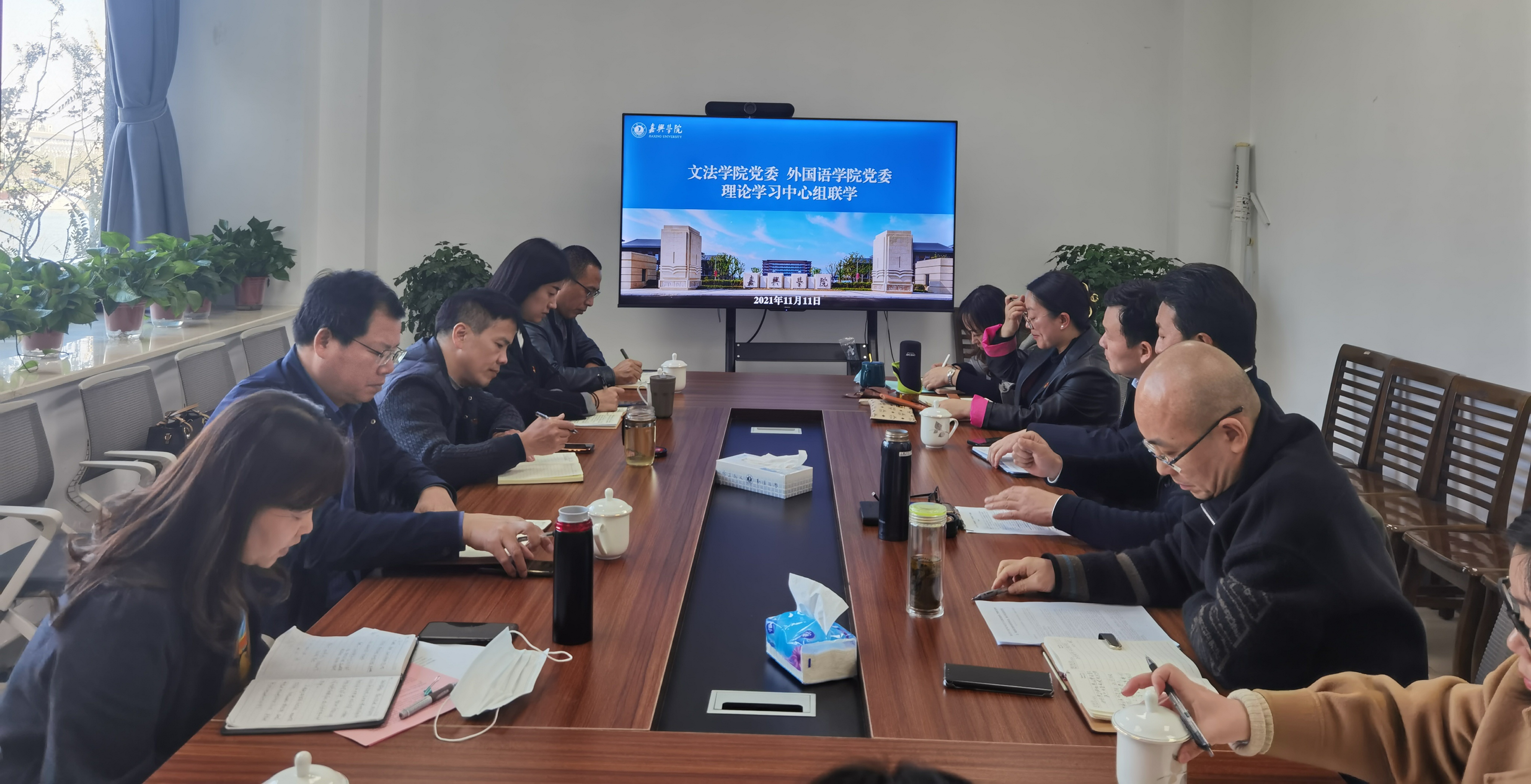 11月11日下午,外国语学院党委与文法学院党委在厚德楼268会议室召开理论学习中心组联学,专题学习“习近平总书记关于立足新发展阶段、贯彻新发展理念、构建新发展格局的重要论述”。校党委副书记吴云达出席会议,会议由文法学院党委书记洪坚主持。文法学院副院长(主持工作)童建华、外国语学院副院长郭永恩分别作主题发言,两个学院全体二级党委理论学习中心组成员参加联学会。
