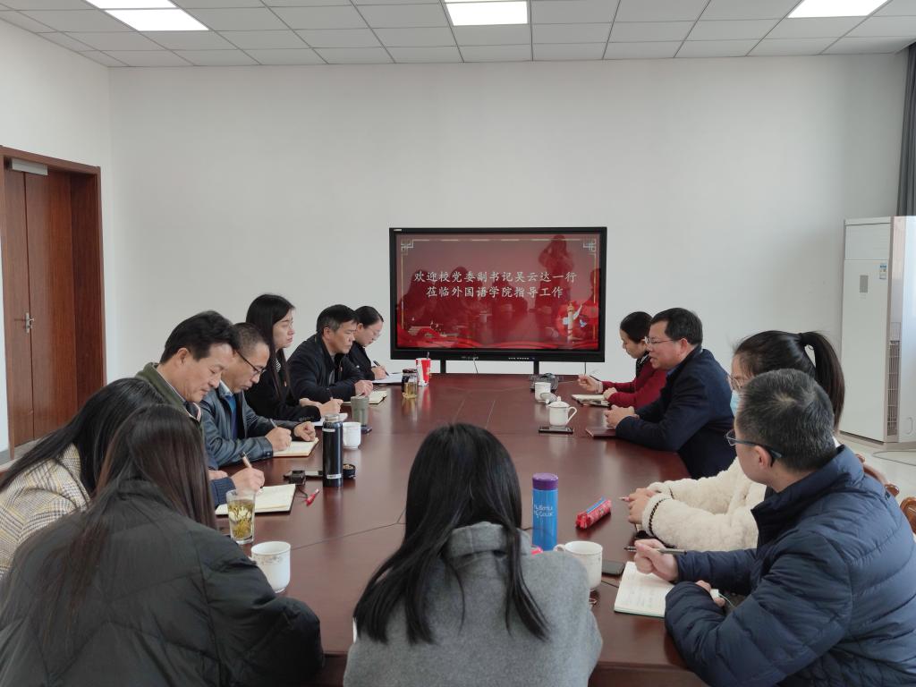 12月7日下午,校党委副书记吴云达来外国语学院调研指导工作,组织(统战)部副部长任玉萍陪同调研。学院党政领导班子成员、党委委员、党支部书记及支部委员参加调研会,会议由党委书记周钰主持。