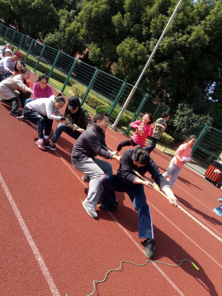 众志成城拔河比赛作为运动会的第一个项目点燃了老师们参赛的热情也把运动会推向了一个小高潮。老师们的参赛热情也感染了观战的小朋友们。孩子们热烈的要求参与比赛。刚刚拔得热火朝天的老师们摇身一变成为铁杆啦啦队成员们,在红色的跑道上为孩子们欢呼。
