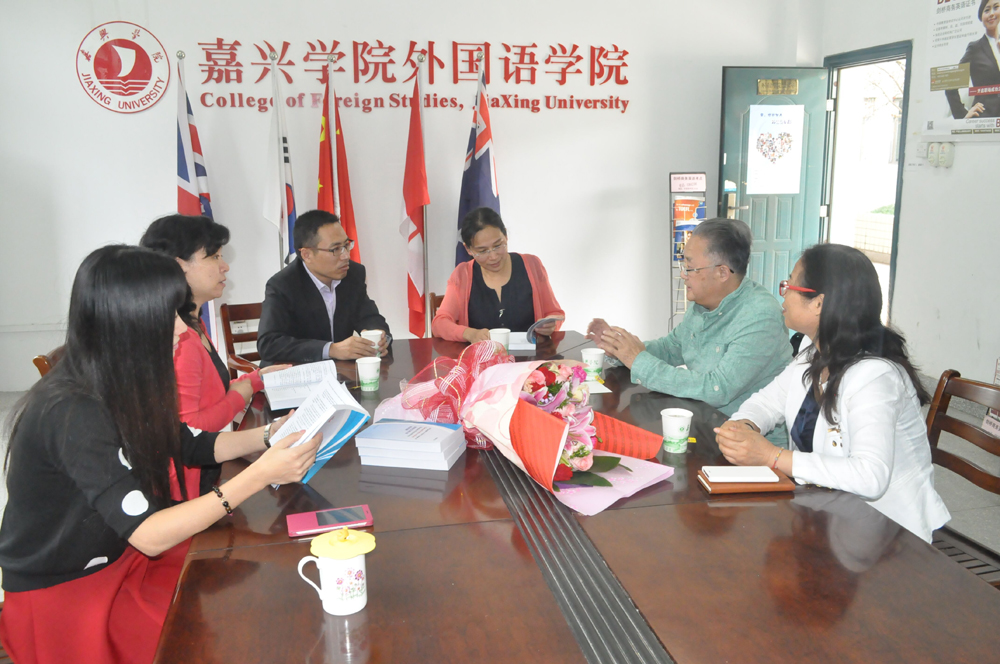 胡鑫镛先生系原英语系教授,于1996年退休。但退休以后仍潜心学术研究,笔耕不断。今年又出版专著“A Guide to the Usage of Semantically-related English Prepositions”(《英语近义词介词用法指南》),并获2015上海国际书展展出。胡教授退休后还创办了嘉兴二十一世纪外国语学校,对外语教学和教学管理有着独到见解,经验丰富。学院领导代表学院接受赠书并对老教授表示感谢。胡教授在其80高龄完成的专著不仅是知识和经验的积淀,更体现了一种治学的态度与精神,值得我们年轻教师学习。赠书仪式之后分院领导也就分院发展状况以及外语教学改革等问题向胡教授进行了介绍和交流,气氛亲切而又热烈。