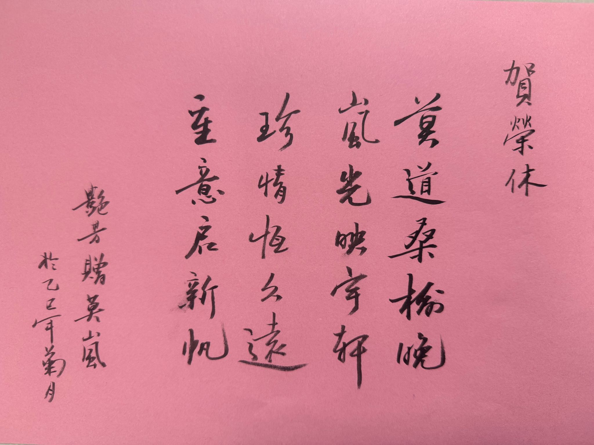 最后,唐艳芳院长即兴赋诗一首《贺荣休》:“莫道桑榆晚,岚光映宇轩。珍情恒久远,重意启新帆”,为莫岚老师送上最诚挚的祝福。他在讲话中指出,莫岚老师勤勤恳恳、默默奉献的精神,值得每一位外国语学院师生学习。这种人文精神的传承,必将为学院的高质量发展注入强大的精神动力。他希望莫岚老师继续关注学院的发展,常回“嘉”看看。