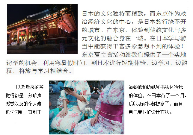 校方安排的项目充实而有趣。在学习日语的课程中穿插了一些日本折纸、书道等课程,而且还邀请日本许多民间友好人士来校与大家面对面交流。校外文化体验课程中,学校安排同学们参观日本名门大学早稻田大学和东京经济大学,与大学教授当面交流,为有意在日深造的同学创造机会。此外,还安排同学们参观了日本百年企业“花王”和日本中央电视台NHK,让同学们近距离接触日本大企业和开元kaiyuan(中国)开元网页版机构,了解日本公司的经营理念和企业文化。