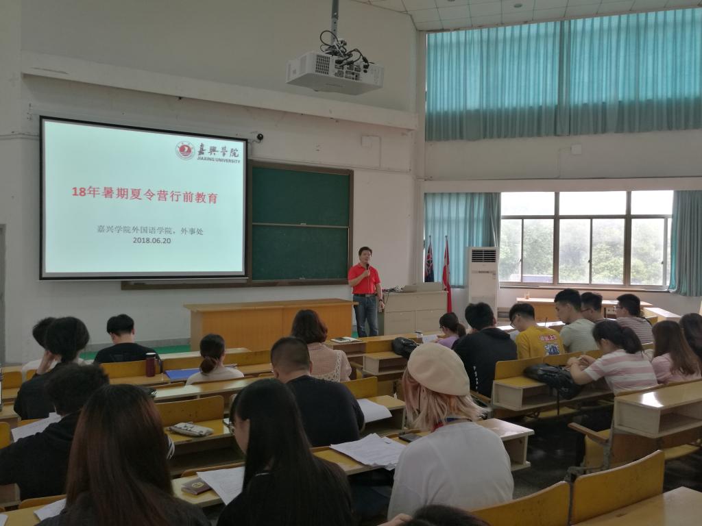 嘉兴学院暑期赴日夏令营活动,迄今举办了两次,共74名学生参加,今年是第三次,有来自外国语学院、南湖学院人文系日语教研室、平湖校区应用技术学院日语系以及其他学院各专业的学生共39名同学参加。鉴于此,为了保证此次活动顺利实施,举办行前教育十分必要。一个月后,39名同学将赴日实习一个月,我们真诚希望嘉兴学院第三次暑期赴日本东京夏令营活动的同学们收获满满,安全归来。