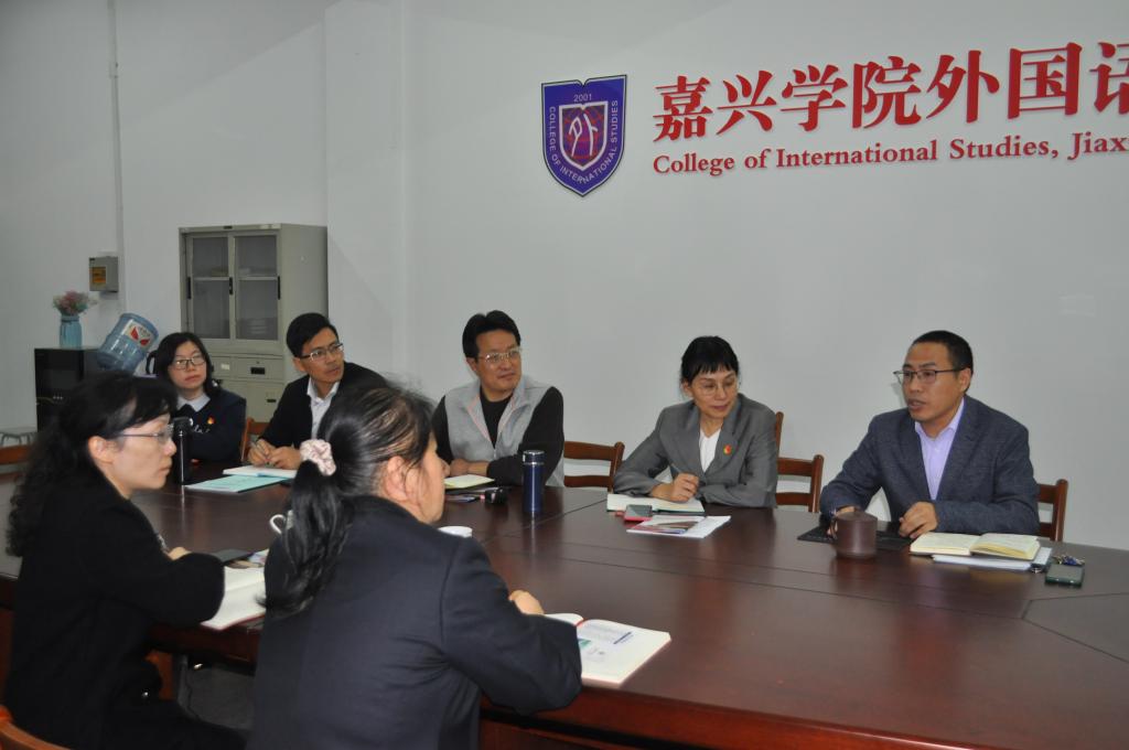 11月5日下午,嘉兴学院副校长张琦、教务处副处长张彩云来外国语学院调研指导工作。外国语学院党政领导、系(部)主任、教研室主任和教务办主任参加座谈会,会议由党委书记陶丹玉主持。