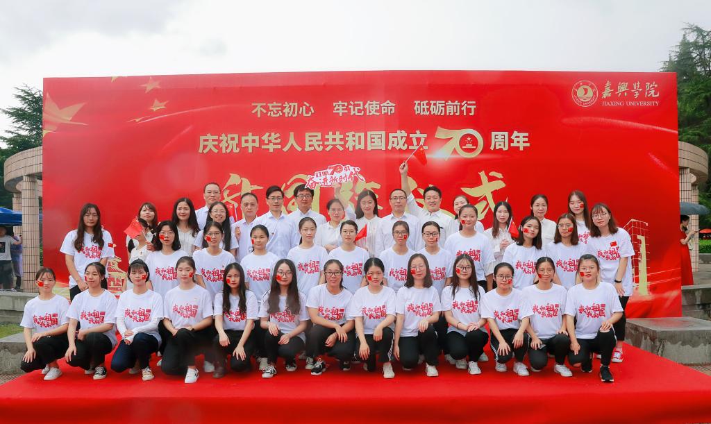 10月1日清晨,嘉兴学院六百余名师生齐聚越秀校区文化广场,伴随着庄严的中华人民共和国国歌,鲜艳的国旗冉冉升起、迎风飘扬,在场的每个人都向国旗行注目礼,为参加了这样神圣的仪式而感到无比激动与自豪。在回外语楼204会议室观看国庆庆典直播的路上,外国语学院的师生们仍然情不自禁地唱着《我和我的祖国》《今天是你的生日》等歌曲表达对祖国的祝福。