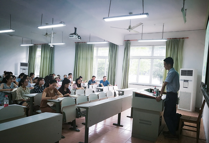 6月27日下午,嘉兴学院外国语学院党委开展党课学习活动,特邀浙江师范大学外国语学院党委书记俞明祥为学院师生党员授课。本次党课由党委书记陶丹玉主持,周钰副书记,郭永恩、喻锋平副院长等60余人师生党员聆听了本次党课。