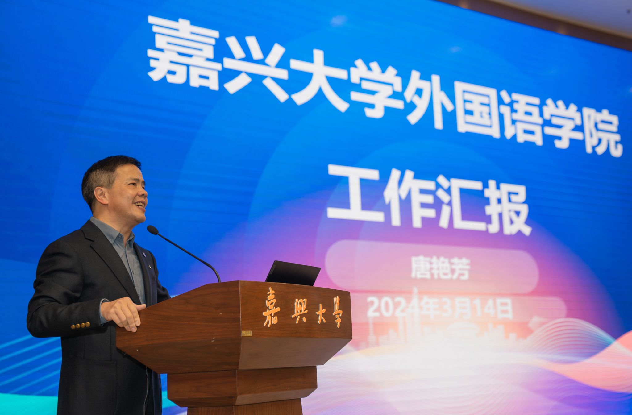 周宏伟向来自湖北49所高校的80余名大学英语院长、系主任表示欢迎,介绍了嘉兴作为中国革命红船起航地、江南文化发祥地和统筹城乡发展先行地的基本情况以及嘉兴大学的办学特色。他指出,嘉兴大学作为嘉兴市唯一的一所省属本科高校,有两个显著的办学特点。一是红船精神育人特色鲜明。学校大力弘扬伟大建党精神、红船精神,持续加强内涵建设,大力培养德才兼备的高素质应用型人才。二是应用型办学成果丰硕。学校深化产教融合、协同育人,已建成一批现代产业学院、企业学院、行业学院,培养的学生与区域社会经济发展需求匹配度高。他希望,参加本次交流会的湖北高校专家们多到嘉兴和嘉兴大学调研、交流和指导,对我校大学英语课程建设和人才培养提出宝贵建议,帮助我们更好地提高教育教学质量,培养更多具有国际视野和跨文化交际能力的优秀人才。