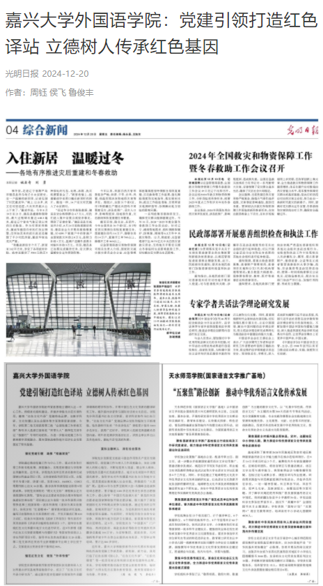 12月20日,光明日报开元网页版报道我院“党建引领打造红色译站 立德树人传承红色基因“。