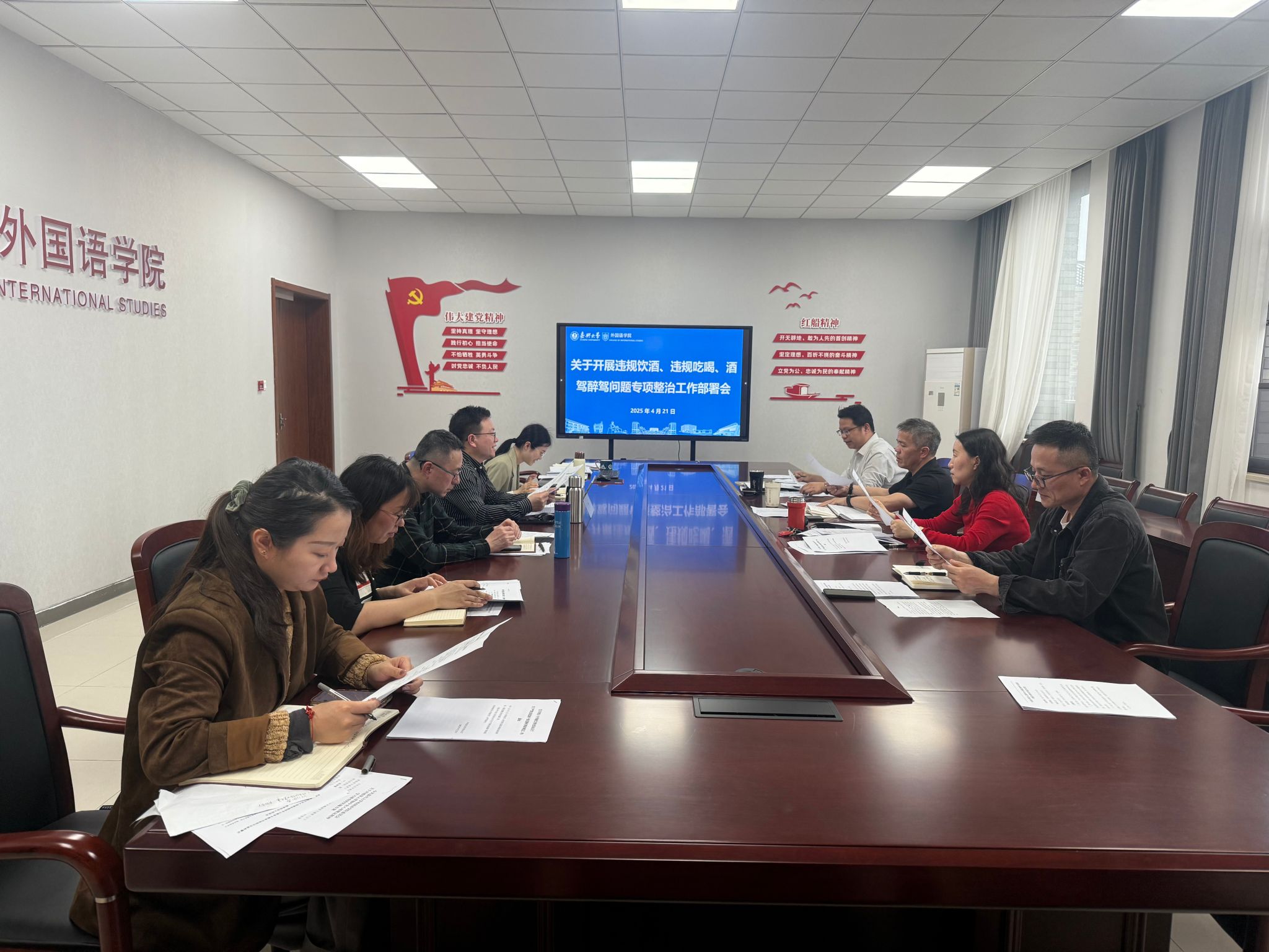 4月21日,外国语学院召开关于违规饮酒、违规吃喝、酒驾醉驾问题的专题警示教育会,部署专项整治任务,进一步严明纪法要求,压实管人带队责任。学院领导班子、党委委员、纪委委员,各党支部书记、纪检委员参加会议。学院纪委书记张啸峰主持会议。