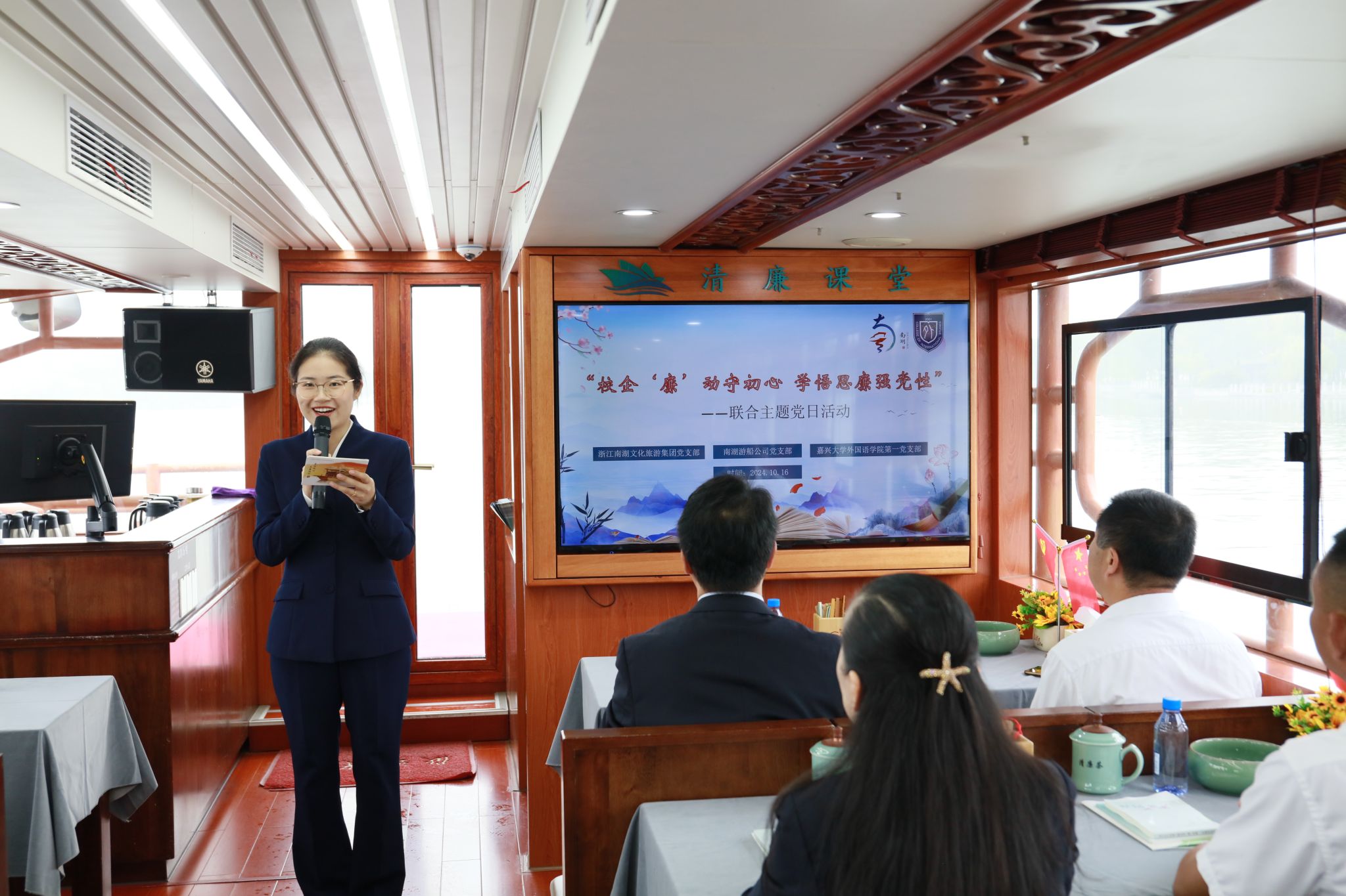 10月16日上午,外国语学院第一党支部联合南湖文旅党支部、游船公司党支部组织开展了以“校企‘廉’动守初心 学悟思廉强党性”为主题的南湖清风行的“水上廉课”联学活动。